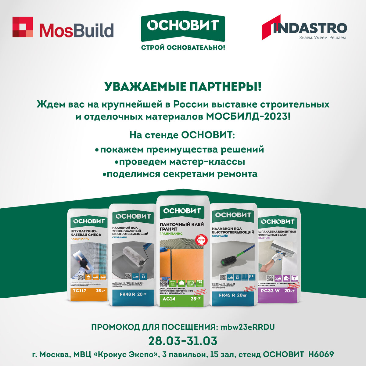 Торговая марка «Основит» примет участие в 28-ой международной выставке строительных и отделочных материалов MOSBUILD 2023