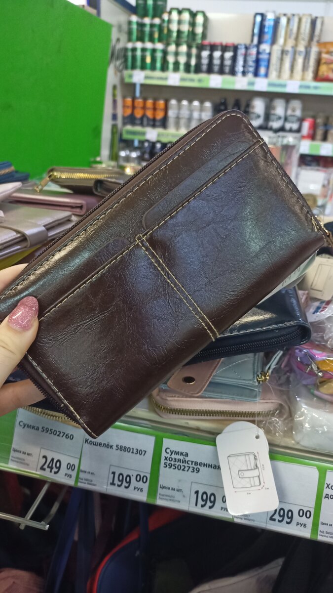 Всем привет, мои дорогие читатели! Проведу небольшую экскурсию по магазину, показывая, что сейчас есть новенького. Что касается самих товаров, то их разбирают в мгновение ока. Новинки не застаиваются на полках. Что же приготовил для нас магазин сегодня? Давайте скорее начинать! Смотрите, сколько новинок! 1) Кошелек за 199 рублей Кошелек мне напомнил натуральный кожаный, так как экокожа эта очень похожа на настоящую. Модель качественная, все достаточно аккуратно прострочено. Цвет мне тоже понравился, как и вместительность кошелька. И хоть сейчас кошельки постепенно отходят в прошлое, но у многих они все равно имеются. 2) Органайзер для косметики и аксессуаров за 199 рублей Хоть цена на органайзер и достаточно низкая, он очень хорошо сделан. Обычный пластик, но приятного оттенка. В органайзер можно сложить, как карандаши, помады и блески, кисти, карандаши для глаз и губ. Тональный крем, вероятно, не уместится, но многое влезет. Попробуйте! Это очень удобно! Чем рыться постоянно в космет