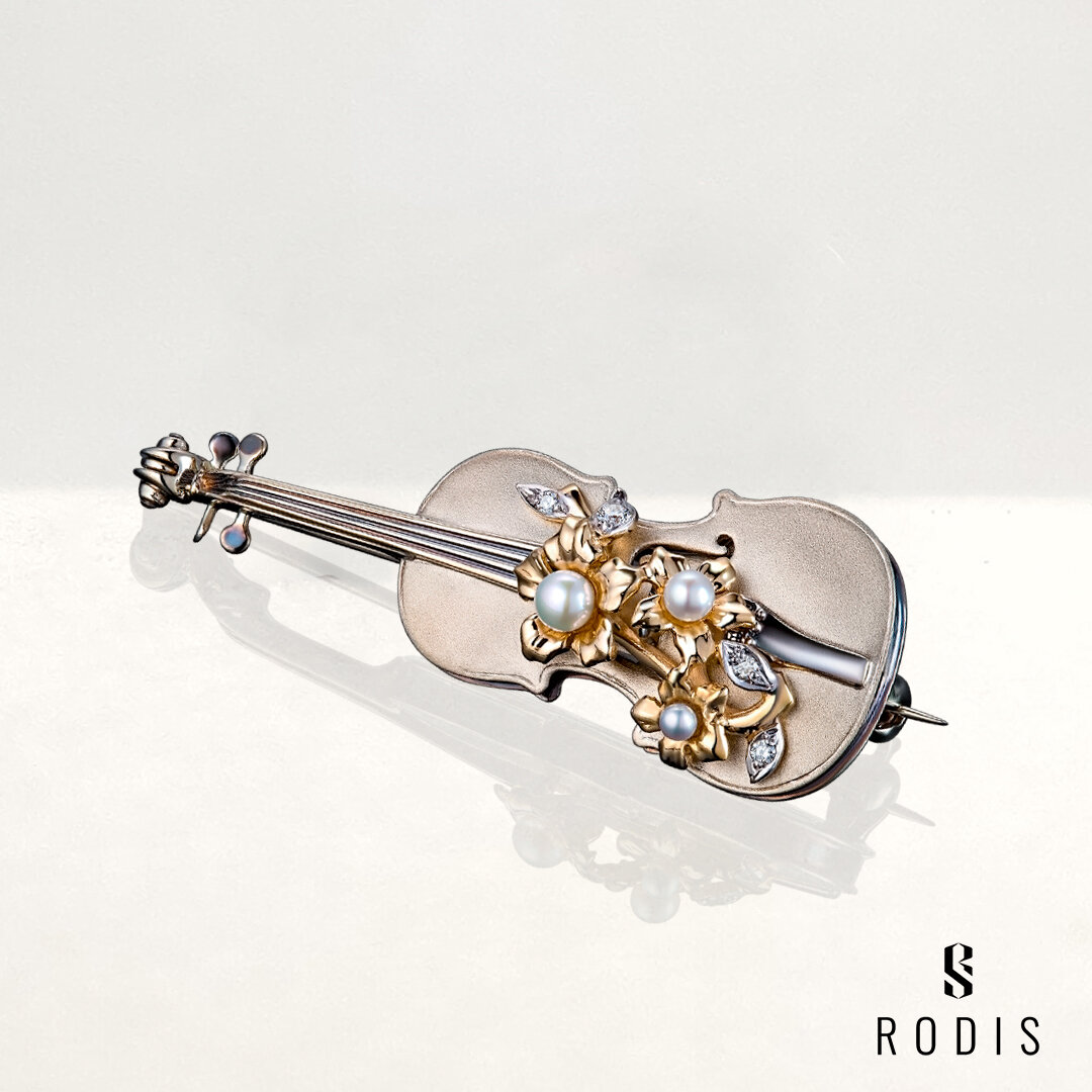 Скрипка — поистине чарующий инструмент. Ее выразительное звучание вдохновляет нас, наполняет эмоциями и дарит волнующие впечатления. Знаете ли вы о том, что украшения способны без слов рассказать о вас и вашем мировоззрении? Драгоценности способны звучать подобно музыке. Скрипку прославили великолепные произведения Моцарта, Вивальди, Паганини, Бетховена, Сен-Санса, Чайковского, Массне и множества других великих композиторов. Мастера ювелирного дома RODIS, также решили выразить свое восхищение королевой оркестра и создали брошь «Скрипка». Подписывайтесь на наш канал, чтобы узнать больше о мире высокого ювелирного искусства! Матовая поверхность броши излучает теплый свет. Скрипка украшена драгоценными цветами, увенчанными круглыми природными жемчужинами. Их яркие глянцевые лепестки и бриллиантовые капли гармонично вписаны в художественный замысел украшения. Искусно выполнена и обратная сторона украшения, она декорирована скрипичным ключом и подчеркивает «музыкальность» броши.