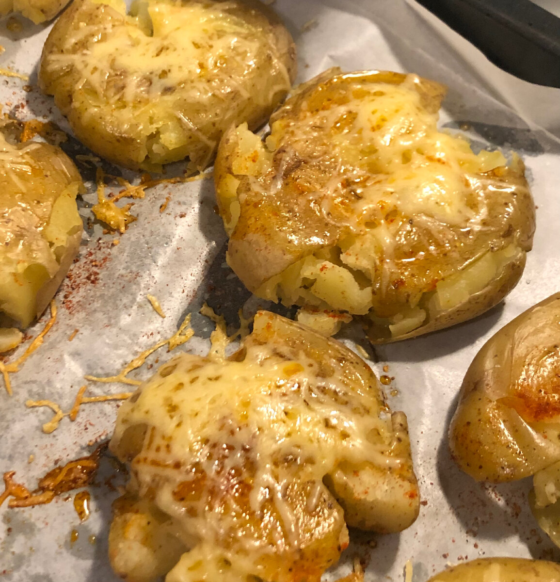 Что нам понадобится: Переходим к приготовлению: • Моем картофель, не чистим!! и ставим вариться до готовности. • Выкладываем на противень бумагу для запекания, поверх нее картофель и давим его стаканом или чашкой. • Поливаем маслом, солим, перчим по вкусу. Ставим в духовку на 180 градусов минут на 15. • Натираем сыр, по истечению времени достаем картофель и посыпаем его сыром, ставим обратно в духовку минут на 5-7. • Готовим соус. В сметану добавляем заранее измельченный чеснок, пару щепоток сухого укропа, соль. Перемешиваем. Соус готов. • Достаем картофель и наслаждаемся вкусом! Всем приятного аппетита!🥰
