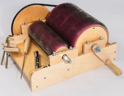 Владельцы овец, коз, домашних альпак и мохнатых собак часто сталкиваются с проблемой обработки шерсти. Подготавливать материал к дальнейшей переработке вручную сложно и неудобно. Барабанный кардер для шерсти призван помочь в обработке натурального волокна. Заготовки, получаемые на станке используются в многочисленных видах творчества, включая заготовку цветной пряжи, валянии, ткачестве. Барабанный кардер: как работает приспособление Универсальная барабанная чесалка - кардер работает не только с натуральной шерстью. Материалом может быть синтетическое волокно, пух кроликов. Результатом прокатки становятся заготовки, называемые мастерицами “баты”. Ручной инструмент не требует много места, прост в управлении, электробезопасен. Пуховые и шерстяные полотна получаются ровными, аккуратными. С такими батами легко работать: их можно разделить на части для валяния, составить вместе для изготовления толстого войлока. Чтобы работать на барабанном кардере, не нужно специальное образование: Чтобы ба