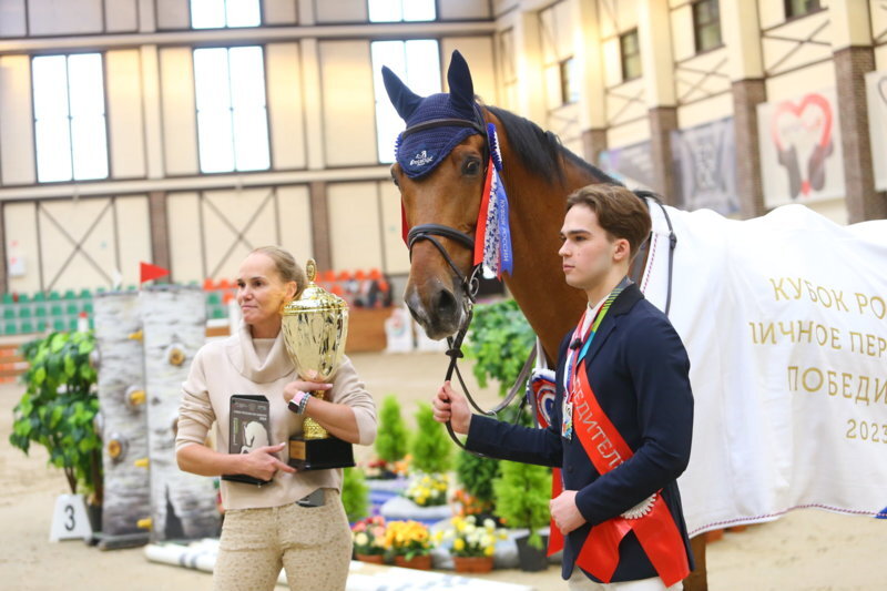 В минувшие выходные в подмосковном конноспортивном комплексе Maxima Park был разыгран главный трофей зимнего сезона по конкуру – Кубок России. Участие в нем приняли лучшие всадники из семи регионов нашей страны. Победитель определялся по результатам выступления в трех маршрутах с высотой препятствий до 145 см, 150 см и 155 см. Четверг, 16 марта, прошел под знаком скорости – спортсмены выступили в маршруте с высотой препятствий до 145 см «На резвость и управляемость». Победителем в этом испытании стал мастер спорта международного класса Сергей Петров, выступавший на лошади Баладинэ де Шаню. На втором месте следовал молодой амбициозный всадник Богдан Васьковский, стартовавший на гнедом мерине Эмили Фонрок. Замкнул тройку лидеров Евгений Овчаренко на гнедом жеребце Корвинус Эмзет. На следующий день претенденты на обладание главной награды турнира выступили в квалификационном двухгитовом маршруте с высотой препятствий до 150 см. Лучшими в нем стали именитый всадник Михаил Сафронов и всадни