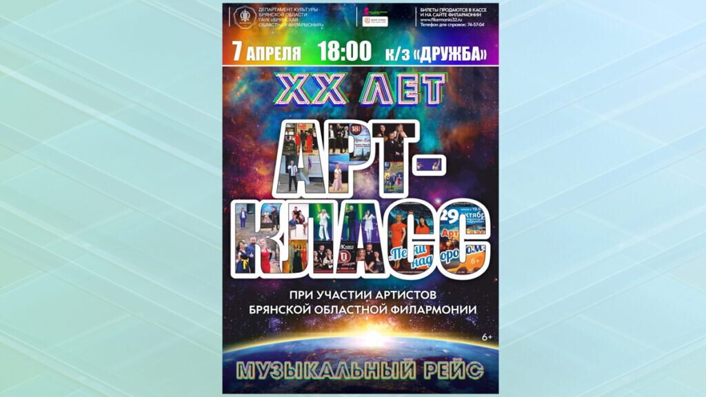 шлягерами, неожиданные коллаборации с другими артистами филармонии. Репертуар группы «Арт-класс» с солистами Елены Марусовой, Светланы Зайцевой и Павла Тонких за 20 лет накопил широкий жанровый диапазон: классический русский и современный романс, песни советских и зарубежных композиторов, джазовые композиции, авторские песни, рок-композиции. 6+ ФОТО: Брянская областная филармония В Брянске состоится юбилейный концерт группы «Арт-класс»