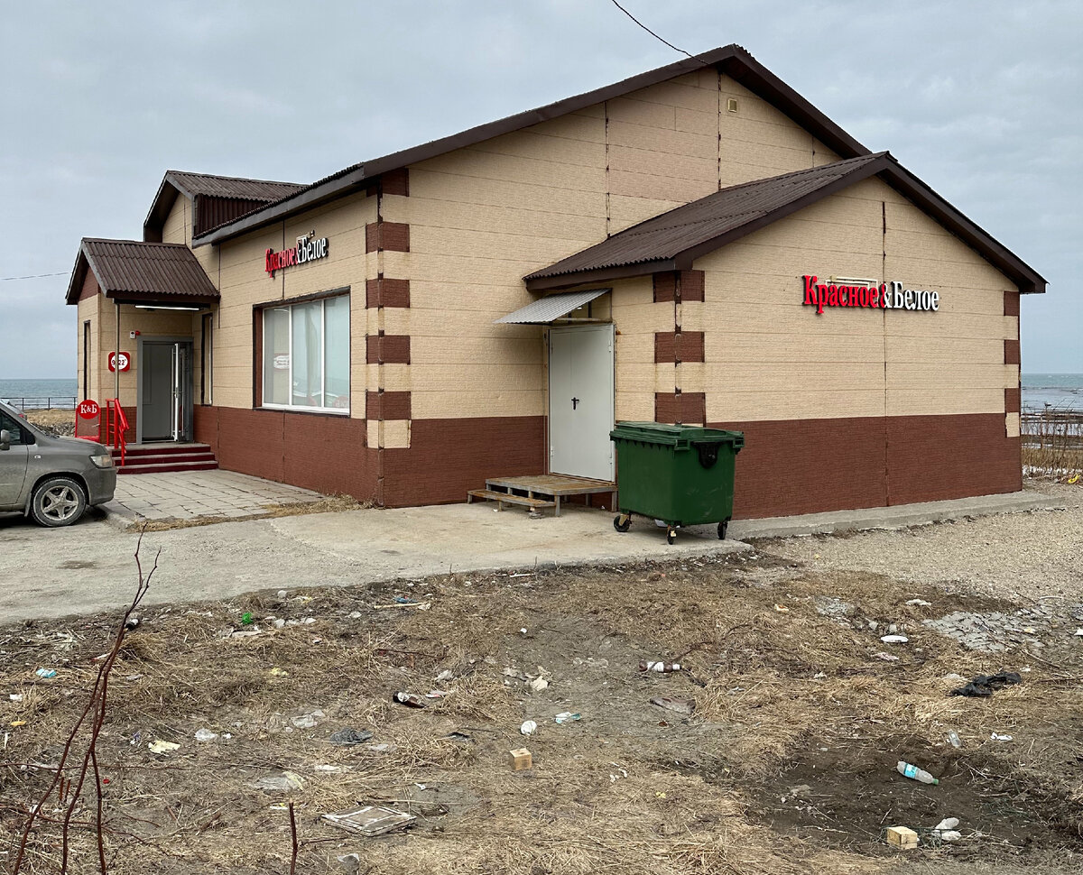 Совсем недавно в Сахалинскую область зашла ещё одна федеральная сеть – «Красное & Белое». До неё у нас был только ширпотрёб в виде «Светофора» и «Маяка». А, ну и «ВинЛаб». Но последний однозначно больше про алкоголь, чем про что-либо другое. А «КБ» вопреки распространенному мнению, всё же не только алкоголем едины, но и продуктами. Знаю, что к «КБ» относятся в России по-разному. Кто-то считает их магазином с лучшим алкоголем, кто-то лавкой для бомжей, но в одном сходятся все – цены действительно низкие! Но оставим лирику и посмотрим на сухие факты. Открылись они в регионе у нас без объявления войны, то есть как и полагается их сети – без рекламы. На сегодняшний день в области 7 магазинов, 3 из них в Южно-Сахалинске. Мне удалось побывать пока только в двух. Вот так выглядит магазин в городе Невельск, около 100 км от областного центра. Если внимательно приглядитесь, то увидите не только мусор на лужайке, но и живописный морской пейзаж позади. А это магазин в Южно-Сахалинске. «КБ» занима