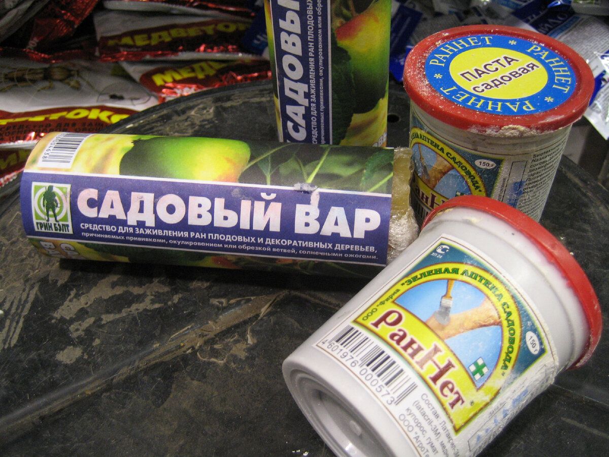 Тем паче, ему альтернатива есть. Скажем, паста РанНет, бальзам Живая кора и пр. Их сейчас много разных. Но самое лучшее – смесь свежего коровьего навоза с глиной 1:1 в консистенции теста для оладушков + медный купорос в количестве 5-10 г на литр смеси. Навоз содержит вещества, стимулирующие регенерацию тканей.