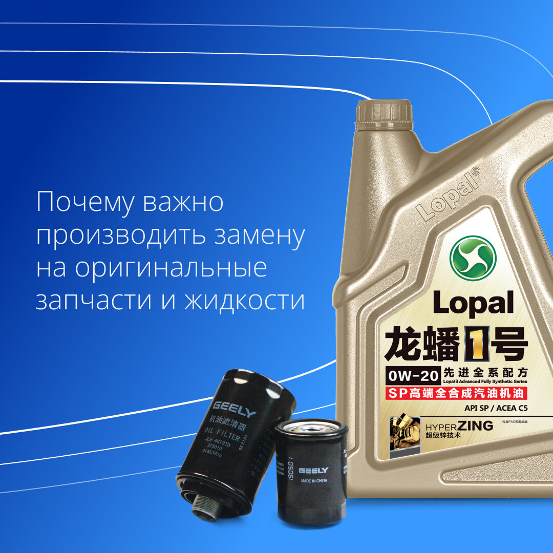 Масляный фильтр является одним из наиболее важных факторов, влияющих на срок службы двигателя. Главная задача масляного фильтра — очищать моторное масло от металлической стружки и примесей. Это также позволяет эффективно смазывать сотни высокоточных движущихся деталей в двигателе вашего автомобиля. Обычно масло меняют вместе с фильтром. Рекомендация Geely — производить замену каждые 10 000 км. Впрочем, нужно также прислушиваться к своему автомобилю: внезапно появившиеся стуки и шумы могут говорить о сильном загрязнении. В этом случае следует обратиться к официальному дилеру, чтобы специалист провёл диагностику. Помните: своевременная замена масляного фильтра — недорогой детали, защищающей всю систему ДВС, — позволяет избежать дорогостоящего ремонта двигателя. Кстати, бытует мнение, что достаточно менять только масло, а фильтр можно очистить и использовать повторно. Это миф! Восстановить его после загрязнения нельзя. Всегда выбирайте качественные новые детали! Их вы легко найдёте у офиц