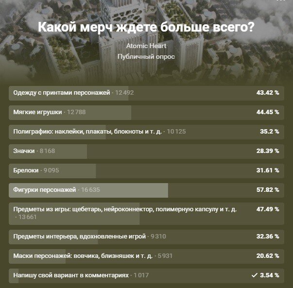 Отечественные СМИ сообщили, что разработчики Mundfish и Lesta Games планируют выпускать в России и СНГ брендированные товары по своим игровым франшизам. Создатели Atomic Heart, например, уже заключили лицензионный договор с агентством Megalicense. Какие товары по Atomic Heart будут продаваться, пока неизвестно, но перспективными в Megalicense видят одежду, продукты питания, канцелярию, товары для дома, электронику, сувениры и атрибутику. На этом фоне Mundfish запустила голосование во ВКонтакте — там лидируют фигурки. Lesta Games, в свою очередь, пока просто строит планы. Но для компании важно продвижении бренда, а не рост выручки от продаж.