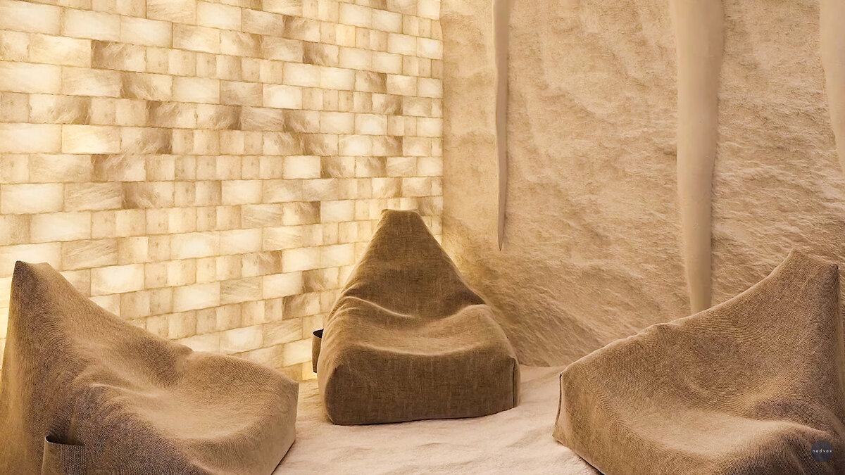 В гостиничном комплексе «Моне» проектируется современный SPA-комплекс с медицинской wellness-концепцией. Для посетителей будет предусмотрено несколько зон для восстановления физического и ментального состояния. Wellness-центры на сегодняшний день очень востребованы. Это хорошая возможность не только разнообразить отдых, но и позаботиться о своём здоровье. Именно поэтому специалисты AR GROUP и Nedvex с особой тщательностью подошли к созданию зоны для SPA в гостиничном комплексе «Моне». Большая термальная зона включается в себя бассейн, финскую сауну и турецкий хамам. Также в SPA расположатся массажные кабинеты, где можно будет расслабиться и восстановиться. Отдельного внимания заслуживает соляная комната со стеной из гималайской соли и купелью. Уже давно замечено, что именно галотерапия является одним из самых эффективных природных методов для оздоровления. После процедур заметно улучшается работа различных систем организма, восстанавливается сон, а также происходит дополнительная акти