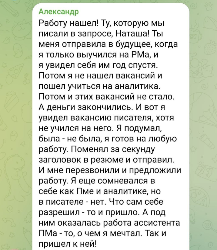 Но это была работа не проектным менеджером, и не бизнес-аналитиком. Александра пригласили на должность технического писателя и помощника проектного менеджера.