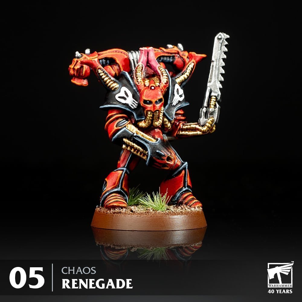 Games Workshop любит памятные даты, а 40 лет — это почти 40'000 лет. Поэтому, пришла пора вспомнить историю и посмотреть, как менялись миниатюры Регената Хаосита. В первом уроке истории для проекта "40 лет Вархаммера", создатели решили мысленно вернутся к первому в истории космодесантнику. По мере того, как популярность Warhammer 40,000 росла, этому благородному рыцарю будущего требовался подходящий противник. Но кто мог противостоять лучшему, что могло предложить человечество? Этот вопрос получил окончательный ответ в виде Ренегата Хаоса. Этот устрашающий воин — раннее воплощение ныне вездесущего космодесантника Хаоса. Искаженные разрушительными силами, Отступники Хаоса носили такие же доспехи, но странной органической формы, с рогами и оружием, вплавленными прямо в их плоть. Кстати, да. Раньше слияние плоти и металла в миниатюрах было куда более интересным. Не было четкой грани между живой плотью и холодным металлом. Плазменная пушка и цепной меч станут культовым оружием 41-го тысяче