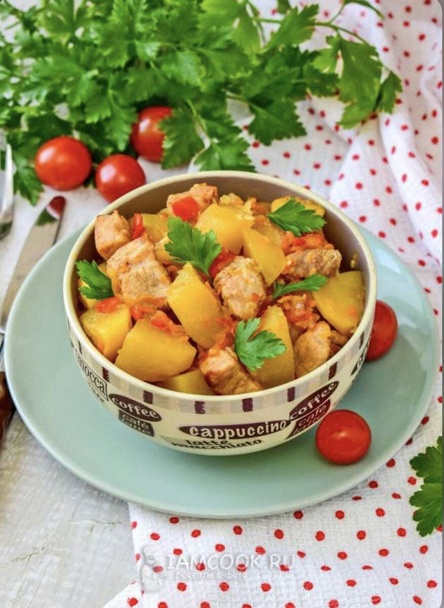 Жаркое по-деревенски - это простое, вкусное и сытное семейное блюдо из самых обычных продуктов. Чего-то из овощей можно положить больше или заменить на что-то другое. Блюдо достаточно универсально в исполнении. Ингредиенты для приготовления: Свинина - 500 г Лук - 1 шт. Морковь - 1 шт. Помидоры - 1-2 шт. Болгарский перец - 1 шт. Картофель - 700 г Вода - 400 мл Растительное масло - 20 г Соль, специи - по вкусу Приготовление: Продукты для приготовления жаркого по-деревенски из свинины с картошкой на сковороде - перед вами. Вообще, мясо можно взять любое, но чаще всего используют свинину. Картофель очистите и промойте от загрязнений. Мясо нарежьте на кусочки среднего размера и обжаривайте 5-7 минут с добавлением растительного масла. Мясо должно начать немного поджариваться. В это время мелко нарежьте очищенный лук. Выложите его в сковороду к мясу. Затем добавьте морковь. Её можно натереть на терке или мелко нарезать. Обжаривайте еще 2-3 минуты. Следом добавьте нарезанные помидоры и болгар