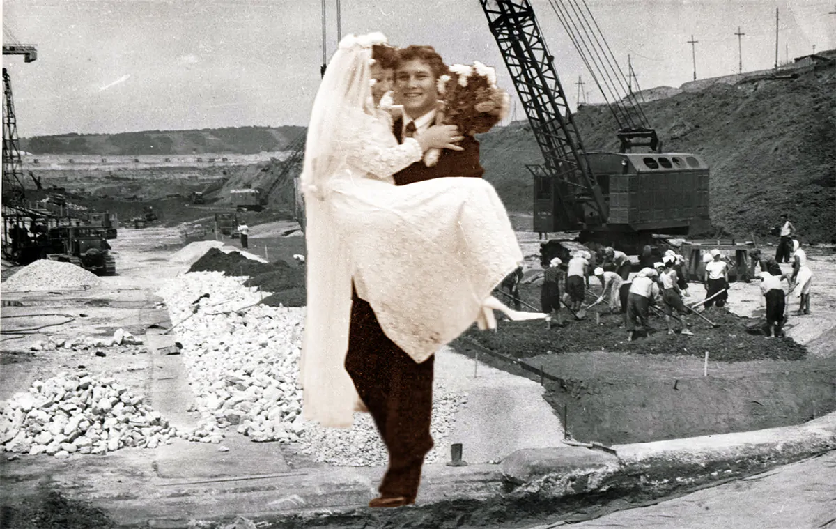 Выходных и праздничных дней на площадках первых Всесоюзных строек не наблюдалось. Особенно в те напряженные дни, когда сдача очередного объекта была в зоне готовности номер один. В один из таких авральных рабочих дней мне пришлось стать свидетелем того, как на строительную площадку будущей Саратовской ГЭС прибывает свадебный кортеж. Правда, назвать появление ЗИЛа, в кабине которого сидела невеста в белоснежном платье и жених при всем параде, праздничным словом «кортеж» было бы не совсем не обосновано. Но само появление молодоженов на стройке века явно вызывало огромное любопытство. ЗИЛ (а только эта машина, а не легковая, могла пробраться в центральную часть строительной площадки) остановился у объекта, где трудилась бригада известного бригадира Андрея Зновенко. Увидев, кто и зачем прибыл прямо в пекло стройки, бульдозеристы бригады Зновенко мигом заглушили моторы своей мощной техники и заспешили навстречу дорогим гостям. Чтобы познакомить со своей невестой своих товарищей по бригаде,