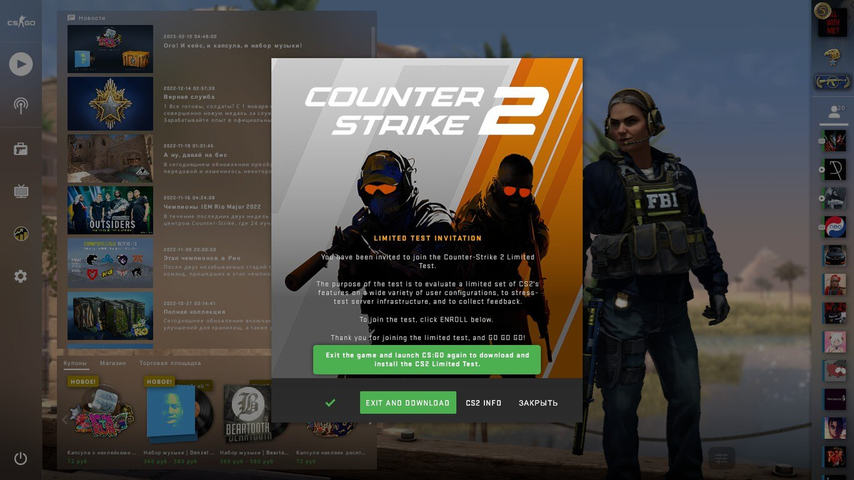 Если вас выбрали для участия в Counter-Strike 2 Limited Test, вы получите уведомление в главном меню CS:GO.