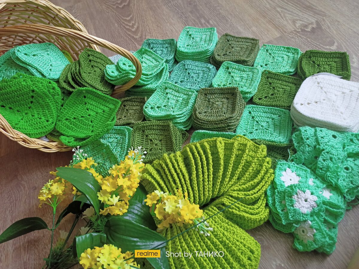 Доброго времени суток ☀️🌙✨! Да, зря переживала, количество мотивов связано, хоть и меньше, чем планировала. Но по примерным расчетам этого количества хватит на размер примерно 140*190 , с учётом предстоящей сборки и обвязки может увеличиться. Квадратики и так и сяк повертела, как шахматную доску разложила. В корзинку снова собрала, но помещаются они в ней с трудом. Примерная схемы раскладки были нарисованы давно. Столкнулась с тем, что пряжа разных цветов было разное количество, и на выходе тоже получается, то густо, то пусто. То лишние мотивы остаются, то нехватка сказывается. Вот и сижу, кручу - верчу, так и сяк прикладываю. Один из вариантов, но это только начало игры в пазлы! Внучку буду в гости ждать, может она какой вариант подскажет.😉 Всем весеннего настроения и солнца ! А то у нас вечером дождь проливной, а утром каток заливной...