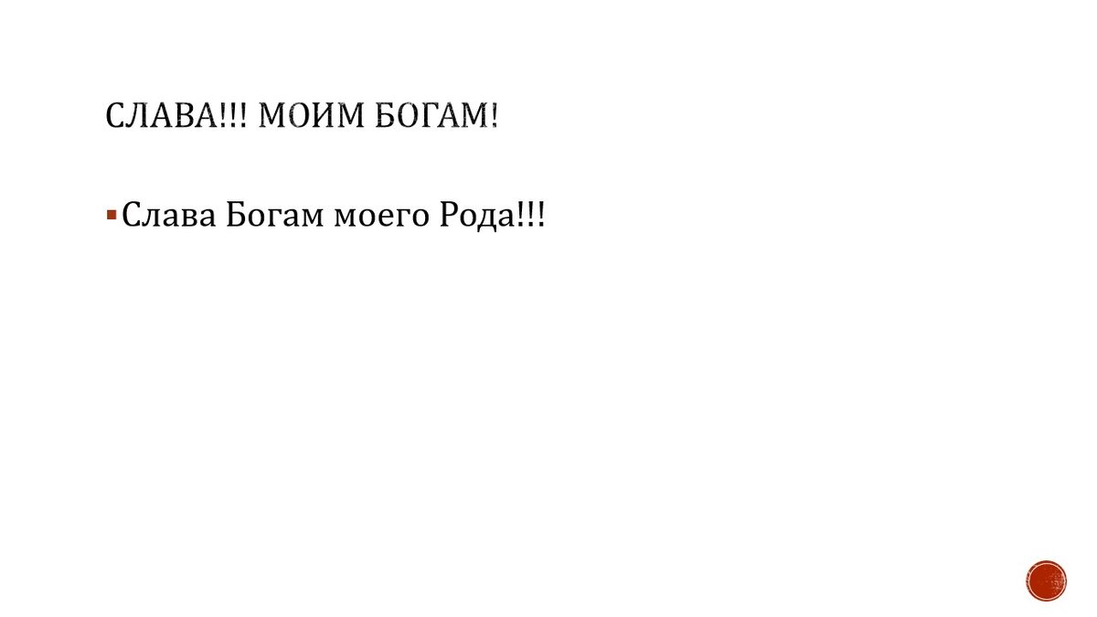 Пожелайте Славы СВОИМ Богам Громко, звучно , внятно произнесите: Слава!!! моим Богам! Слава!!! Богам моего Рода! От такой фразы встрепенутся все Божественные Силы вокруг вас и захотят с вами познакомиться. Пвторите фразу в течение дня несколько раз. Проснутся и начнут потягиваться ваши Божественные Силы. Внутри вас. А вы приступайте к своим обязанностям Радость - базовая жизненная энергия.Жизненность, рост, увеличение, эволюция, развитие ощущается как РАдость. Находим секунду радости и закрепляем: Звучно, весело и громко Можно! Можно и мыслью сказать Славу громко, звучно и весело. Так, что волна радости прозвенит по всему телу и до самой дальней клеточки дотянется.