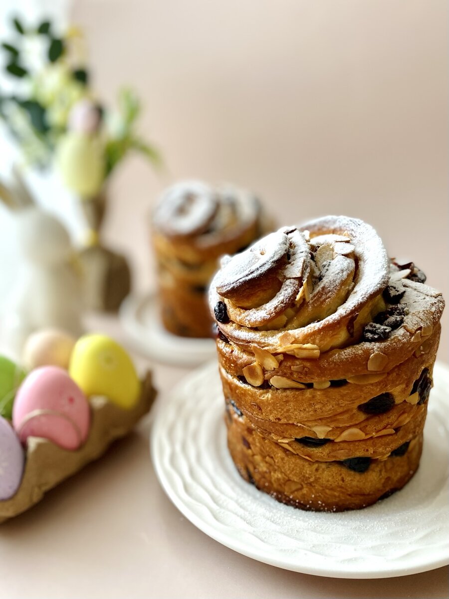 Краффин это король среди куличей на праздничном столе. Очень вкусный и потрясающе красивый, с богатым внутренним миром, состоящим из изюма, клюквы и миндальных лепестков.