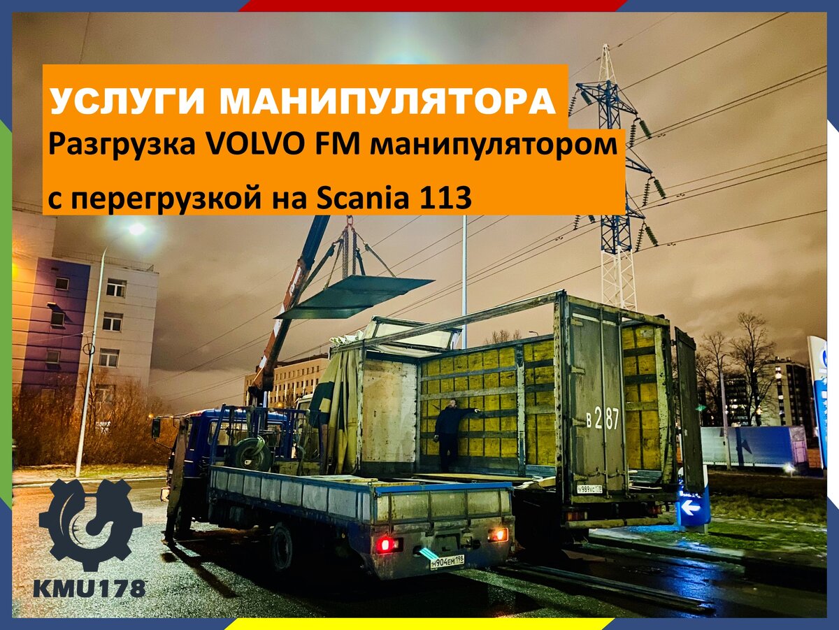 Ездили вечером спасать знакомых, перегружали 5 тонн листового металла с Volvo FM на Scania 113.