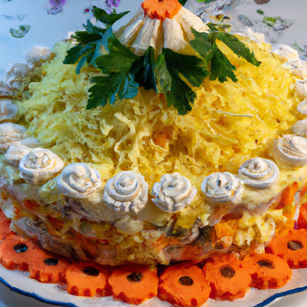 Классический салат «Мимоза» – это одно из самых популярных блюд на праздничном столе. Для его приготовления потребуется картофель, морковь, яйца, лук, консервированный горошек, майонез и зелень. Ингредиенты: - 4-5 картофелин - 3-4 моркови - 4 яйца - 1 луковица - 1 банка консервированного горошка - 4 ст. ложки майонеза - зелень для украшения Приготовление: 1. Отварите яйца вкрутую, остудите их, очистите и разделите белки от желтков. 2. Отварите картофель и морковь до готовности, остудите и очистите. 3. Нарежьте картофель и морковь мелкой соломкой и выложите на дно салатника. 4. Нарежьте лук полукольцами и выложите на морковь. 5. Выложите на лук слой горошка. 6. Натрите белки на мелкой терке и выложите на горошок. 7. Натрите желтки на терке и выложите на белки. 8. Смажьте салат майонезом и украсьте зеленью. Вкусный и питательный салат «Мимоза» готов!