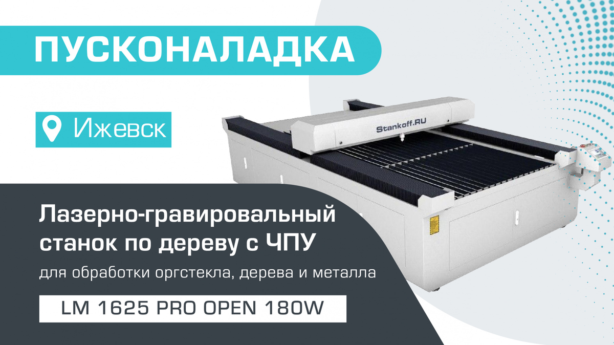 В марте 2023 года нашей компанией была проведена поставка и пусконаладка лазерно-гравировального станка с ЧПУ для резки фанеры, пластика и других материалов LM 1625 PRO OPEN 180W в Ижевске. Данный лазер широко применяется для производства рекламной, сувенирной, текстильной, обувной, мебельной и пр. продукции. Профессиональная область клиента связана с геодезической и картографической деятельностью.