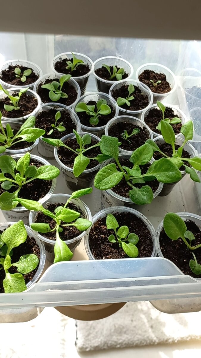 Привет дорогие цветоводы,садоводы и любители растений🥰 Как же выглядит моя петунья,точнее рассада,высаженая в разные сроки🤔 Первый посев я сделала,как все "белые"люди вовремя,так я считаю)))...точнее в первой декаде февраля,нуууу...во-первых взошла не вся,некоторая вообще меня послала,во-вторых,что взошло попадало от черной ножки или ещё Бог весть отчего🤦♀️но кое-кто всё же выжил и развивается по разному👇 Второй посев я смогла осуществить только 3 марта и в хороший верховой торф,взошла отлично,пусть некоторые виды и не вся проклюнулась,но зато стоит бодрячком,хотя тоже выглядит и развивается по разному,да и взошла в одной чеплашке в разное время🤷♀️👇 Сделала и третий посев в середине марта,числа 16 или 17,успеет👌 не переживайте,тем более позже всё переедет в теплицу,а таааам...всё быстенько оживает и растёт,главное не прохлопать полив и пересадку😁 А ещё меня радуют мои красоточки пеларгонии,которые не обрезала,полюбуюсь,да и черенкану с лёгкой душой без жалости😄🌸🌱 А ещё р