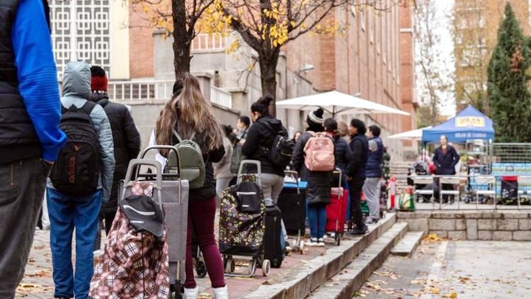 Статья сопровождается фото-иллюстрацией «Голодная очередь [в Испании] (Una fila de personas en las llamadas ‘colas del hambre’).