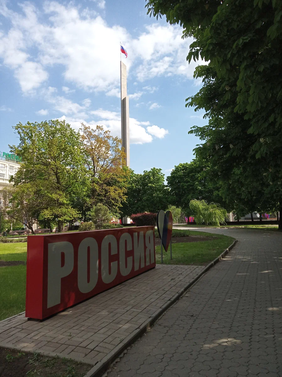 Начну с этого фото. На нем понятная всем инсталляция со словом "Россия" и сердечком в сквере у площади Ленина у нас в Донецке. Подчеркну, триколор на огромном пилоне с уже забытой цитатой вождя пролетариата "Донбасс, это - не случайный район, а это - район, без которого социалистическое строительство останется простым, добрым пожеланием" появился еще 22 августа 2019 года. Таким образом в День флага ДНР благодарила большую страну за поддержку, оказываемую с 2014 года.