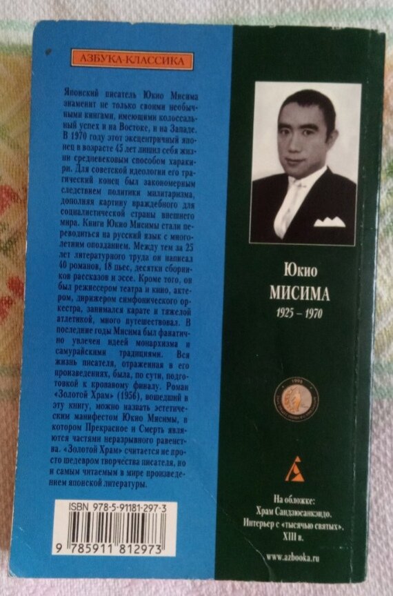 Вот люблю я японцев за их самурайскую душу! Залезла я в шкаф за Шекспиром, а на меня «упал» Юкио Мисима. И естественно, засунула я свой любопытный нос и все, пропала и потерялась в страданиях юного буддиста. Думаю, что многие знают Юкио Мисима – знаменитый японский писатель и драматург. Шокировал публику тем, что в 1970 году совершил публичное харакири в знак протеста против утраты Японией самурайского духа. Хотя, часть биографов Мисимы не исключают, что косвенной причиной скандального самоубийства стала глубокая депрессия из-за неполучения Нобелевской премии по литературе. На неё честолюбивый Мисима не без оснований рассчитывал, а получил ее советский писатель Михаил Шолохов за «Тихий Дон» в 1965 году. И так, о чем роман? После смерти отца Мидзогути поступает в школу при буддийской академии Риндзай, где находится легендарный Золотой Храм, один из самых выдающихся архитектурных памятников Киото. Постепенно Храм занимает всё больше места в мыслях Мидзогути, становясь настоящим идеалом П