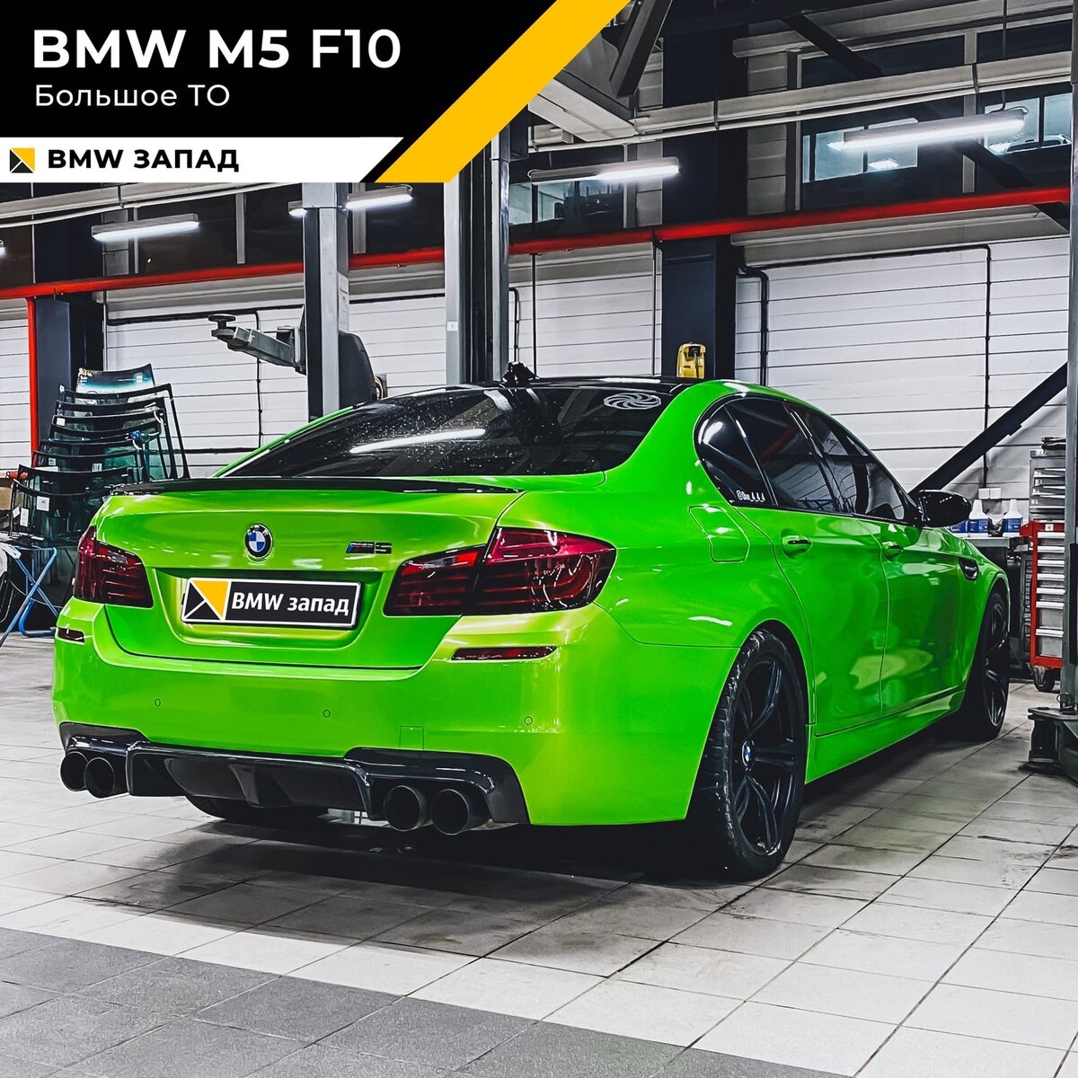 Наш техцентр занимается обслуживанием не только гражданских, но и «заряженных» версий BMW. На фото модель М5 в кузове F10 нашего постоянного клиента.