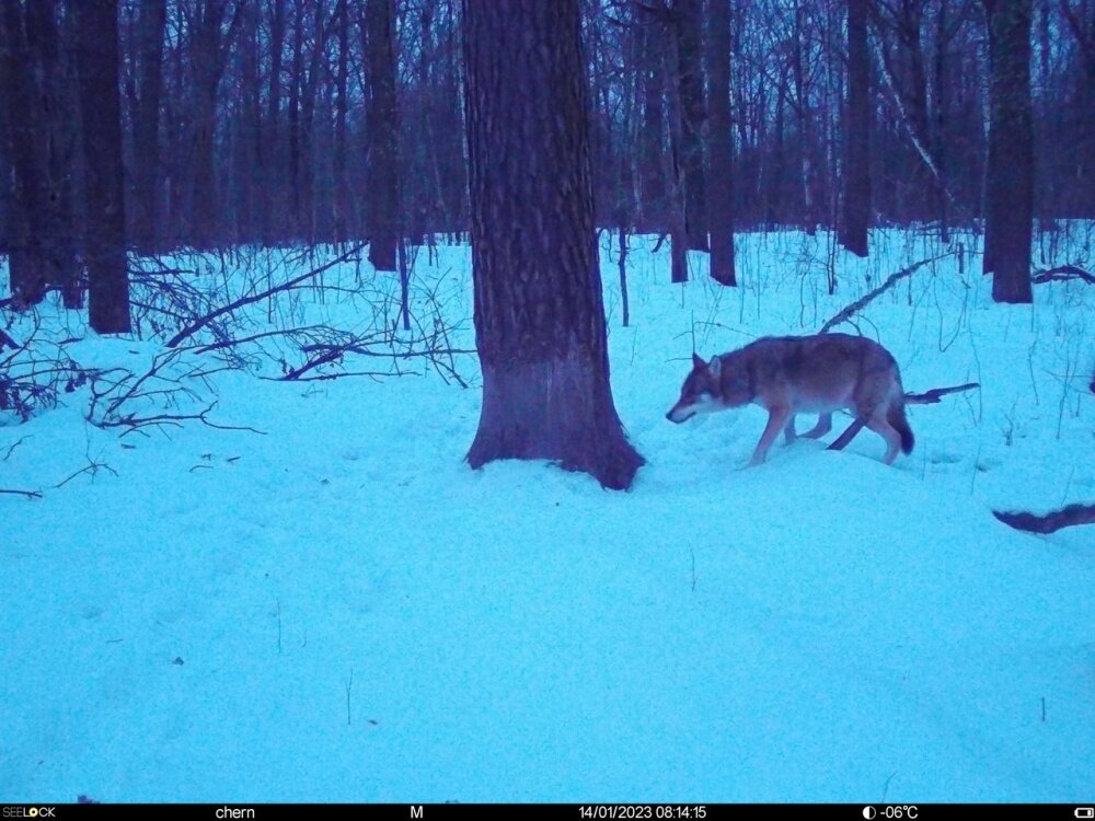 — Ну… вообще-то волки, как и лоси, тоже здорово вязнут в снегу, когда его много. Прошлая зима была очень многоснежной. Видели на видео с фотоловушек, как волки прибиваются через снег, как тонут в нём. Сейчас снега в лесу не много, но он очень плотный. В какой-то момент на снегу была жесткая корка. Видели следы лосей с кровью. Они стирали ноги об эти корки до крови. А кабаны ранили свои рыла, когда пытались добывать пищу. Сейчас, в принципе, все в одинаковом положении.