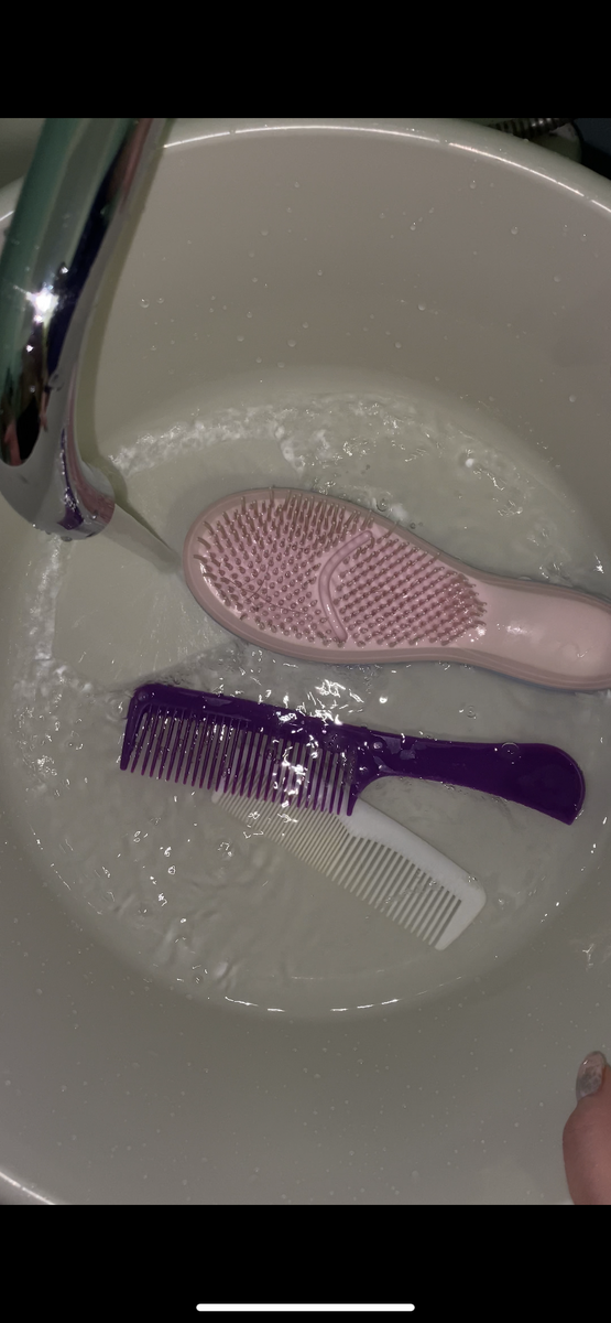 Когда мы расчесываемся, на расческе скапливаются мелкие частички кожи и кожный жир. Если вы пользуетесь укладочными средствами или сухим шампунем, они тоже накапливаются на зубчиках или щетинках и между ними. Кроме того, когда расческа лежит на полке, пока мы не пользуемся - на ней скапливается пыль.Если вы не очищаете расчёски, значит вы всё начёсываете обратно в голову! Чтобы не заносить грязь на волосы и кожу головы, регулярно мойте расчески. Причем нет важности, какая это расческа: массажная, которой вы пользуйтесь каждый день; щетка-брашинг для укладки или тонкий гребешок для пробора. Очищать расческу ОТ ПЫЛИ лучше ежедневно, а очищать ОТ ВОЛОС и мыть — раз в неделю. Кроме того, если вы пользуетесь укладочными средствами, можно мыть расческу дважды в неделю. Если ваша “массажка” или брашинг сделаны из пластика или из дерева, вам подойдет самый ПРОСТОЙ И ПОПУЛЯРНЫЙ МЕТОД ОЧИЩЕНИЯ. Для него понадобятся: глубокая емкость с водой (у меня обычный тазик), немного шампуня (у меня м