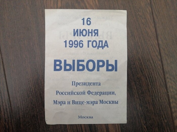 Рукожоподелия длиннопост с картинками. *Пост преследует исключительно развлекательные цели, так как любые иные автор в принципе считает несущественными. 1996. Мне 16. Предвыборная кампания 1996 года была, конечно, беспрецедентно интересной и яркой, а её апогеем, вершиной, Эверестом, стали, на мой взгляд, пляски одного из кандидатов под песню Евгения Осина. Вот это великолепие в динамике: Трэш, угар и содомия например - вот несколько слов, которыми можно кратко описать те чудесные времена, память о которых мне почему-то захотелось тащемта увековечить. Идея возникла спонтанно и для её реализации я прикупил на одном интернет-ресурсе, где тусуются разные старьёвщики и коллекционеры несколько артефактов, имеющий прямое отношение к событию, а именно: Избирательный беллю.. бюлле.. в общем вот это. 2. Это же для повторного голосования. 3. Агитационную листовку, которая в начале поста. 4, 5. Аутентичный календарик с Борис Николаичем, призывающий выбирать сердцем (а то ж) и значок (что я дурачок