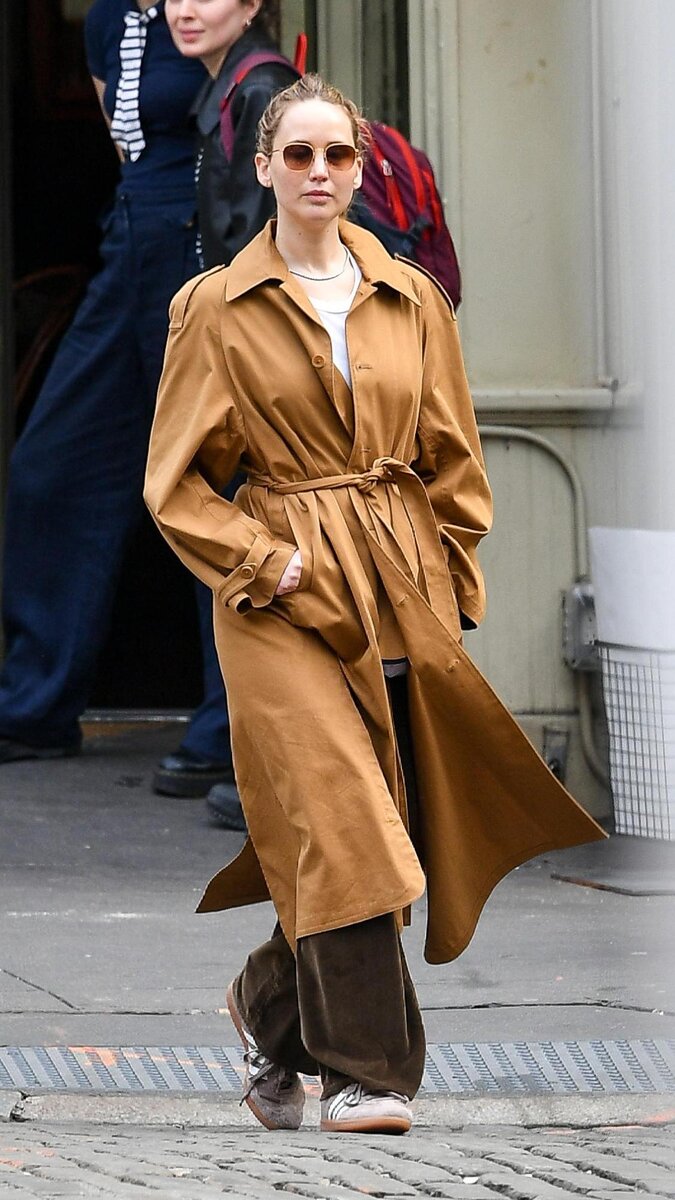 Дженнифер Лоуренс в стильном плаще — он является самым модным предметом верхней одежды весной