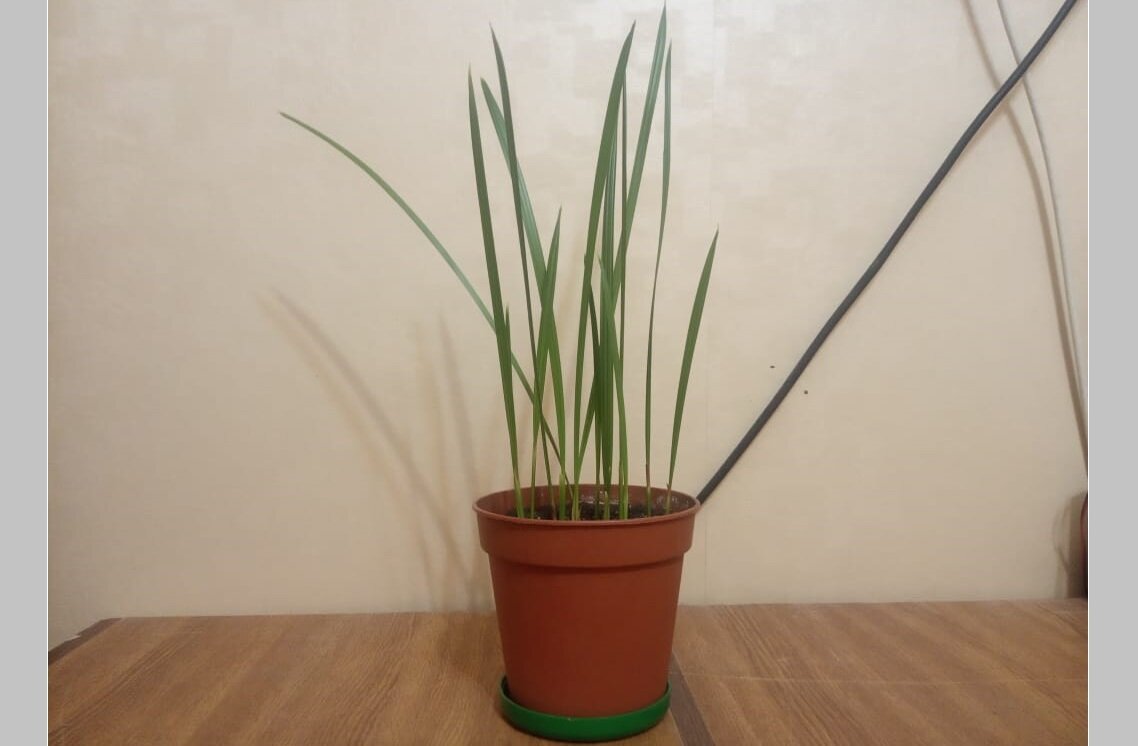 Я читала много статей на эту тему и о том, как выбрать косточку для посадки, как выбрать субстрат, в некоторых статьях читала, что важно правильно выбрать время года, то есть косточка, посаженная не в то время году – не взойдет и финиковой пальмы дома не видать. Сама я поступила намного проще и посмотрите какая красота у меня сейчас растет Скоро надо будет пересаживать, но сейчас я расскажу вам о том, как сажала я. Изначально сами финики были куплены в супермаркете. Финики съедались, а косточки складывались в миску в надежде, что когда-нибудь я их посажу. Кстати, эта была не первая такая надежда, предыдущий косточки, также сложенные в миску, пришлось выбросить в мусорное ведро. В тот день я пересаживала цветы и поэтому взяла освободившийся цветочный горшок, положила на дно дренаж, сверху обычную землю из огорода (запаслась ею с лета) на эту землю положила финиковые косточки (точное количество не знаю, не считала), сверху засыпала землёй и опрыскала водой из лейки с пульверизатором. У м