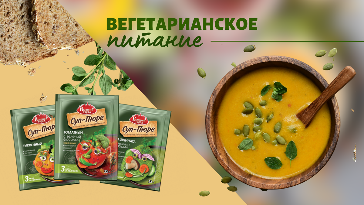 🥕 Компания производства «Вышний город» предлагает свои варианты вегетарианских супов и гороховых нутовых котлет.
