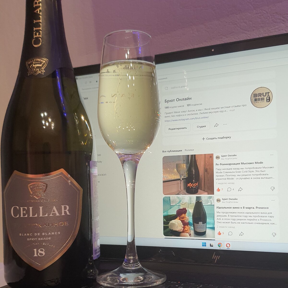 А я к вам с новинкой. Буквально месяц назад увидел, что @millstream выпустили свой классический Blanc de blancs - и сразу же его захотел. И уже сегодня он у меня в бокале. Millstream Original Cellar выдержанное, 100% Шардоне урожая 2020, белое брют. Классический метод, все как полагается. Вино выдерживается 18 месяцев, да не просто так - а в тоннелях. Описание вкусное, но что там внутри? Сейчас все расскажу. Дизайн нетипичен для производителя - раньше Cellar был такими полосками. Эта же этикетка напоминает скорее Dom Perignon - своей формой и цветом. На контр-этикетке информации очень много, но не очень читаемо. Хотел отметить пробку - хорошая, крепкая, но не брендирования. Сам напиток золотистый, прозрачный и чистый. Перляж средний и очень быстро уходит - вот это меня опечалило. Нос не очень яркий. С другой стороны, вполне типичный для Блан-де-бланов. Таманский Шардоне, как он есть: яблоки, немного ванили, приятная сливочность. Спирты не явные, скорее всего недостаточно охладил. Но