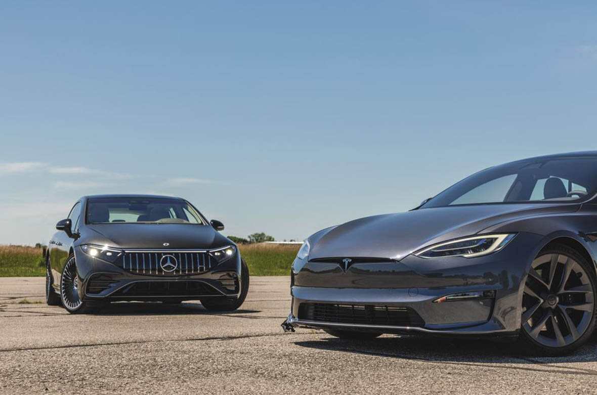 Сравнение новых моделей электрических автомобилей от Tesla Model S и Mercedes-Benz EQS .