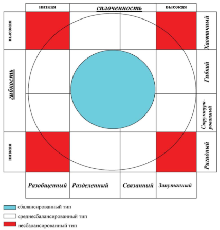 Вчера на лекции давала Циркулярную модель Олсона - она является одной из наиболее понятных техник для меня в работе с парами на семейной терапии. Она включает в себя 2 оси, которые являются ресурсами в семье для решения кризисов: (** Также им вводится 3 параметр – коммуникация, но она графически не включена в модель. Его важно учитывать т.к. именно навыки позитивной коммуникации позволяют изменять уровни сплоченности и гибкости. К позитивной коммуникации относят – эмпатию, умение слушать, навыки самораскрытия, ведение переговоров и т.д.). Выделяет 4 уровня сплоченности (ось близости-дальности): На оси гибкости также выделяет 4 уровня, гибкость понимается как количество изменений в семейном руководстве, семейных ролях и правилах, регулирующих взаимоотношения: Постулируется, что центральные уровни сплоченности на изображении голубым и с улыбочками являются сбалансированными - те, которые смогут преодолеть кризисы поддерживая и понимая друг др. и обеспечивают оптимальное семейное