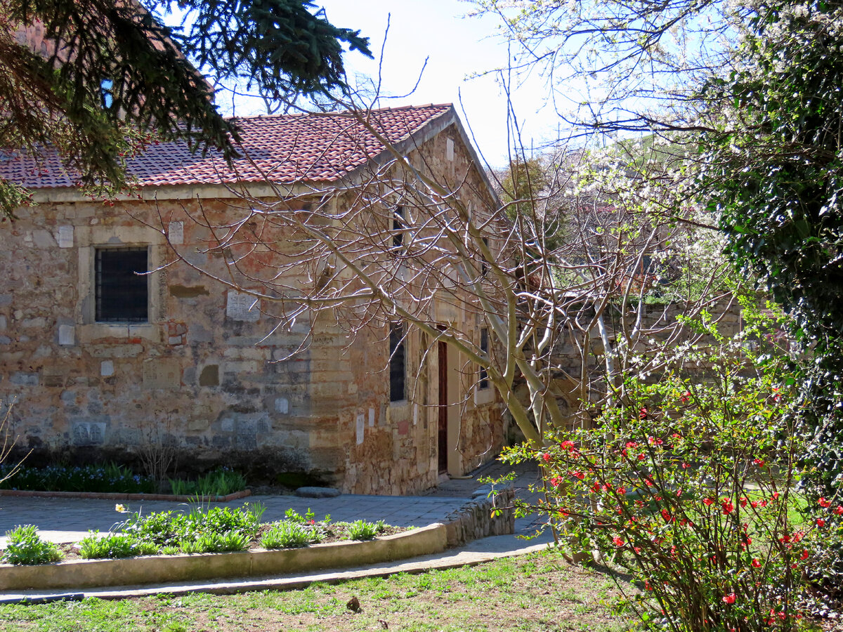 Поэтому мы видим только остатки былой роскоши. Еще сохранилось немного фресок на стенах и потолке. Даже видны два слоя росписей, относящихся к разному времени. Голубой свод и стены, с золотыми звездами, тоже относятся к старым временам.
