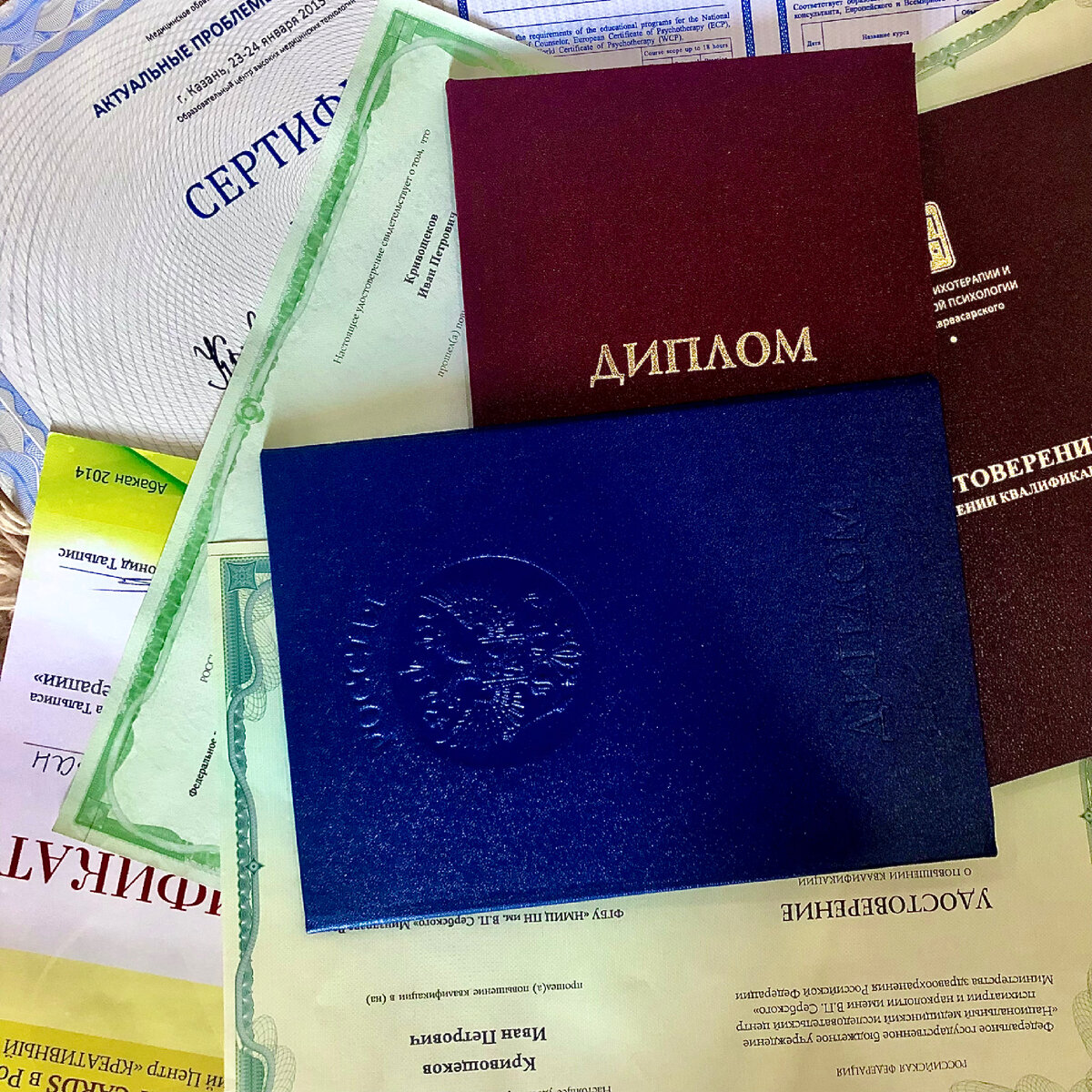 При выборе психолога многих интересует вопрос об образовании, которое имеет специалист. Есть ли у него базовое психологическое образование или он окончил только курсы. Я работаю психологом более 10 лет и базовое психологическое образование у меня есть. Также я прошёл многочисленные курсы повышения квалификации и участвовал в различных образовательных мероприятиях. 🌱 В 16 лет я поступил на психолога в медико-психолого-социальный институт при «ХГУ им. Н.Ф. Катанова». Это был 2006 год. Окончил его в 2011 году получив квалификацию «Психолог. Преподаватель психологии», специализация - клиническая психология. 5 лет института. Это было прекрасное время. Я знал, что хочу заниматься этим дальше, что хочу работать в этой сфере. 🌱 2015-2016 гг. я дополнительно прошёл переподготовку по клинической психологии, углубив свою компетенцию по данному направлению. Что касается прохождения программ повышения квалификации и участия в образовательных мероприятиях? Начну со свежих. 🌱 2022 год, октябрь. Об
