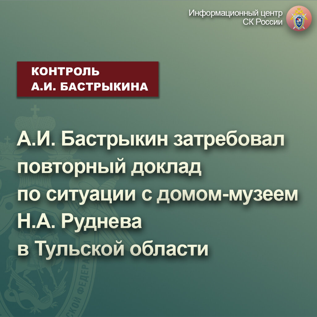 А.И. Бастрыкин затребовал повторный доклад по ситуации с домом-музеем Н.А. Руднева в Тульской области
