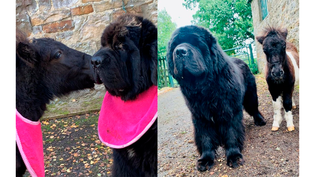 Четырехмесячный шетлендский пони Саттон и пятилетний ньюфаундленд Дом с первой встречи стали лучшими друзьями. Когда владельцы собачьего питомника Newfangled в Нортумберленде (Англия) привели жеребенка, то и подумать не могли, что один из их псов — суровый Дом — возьмет над ним шефство. Всего в питомнике живет восемь собак, но только Дом смог подружиться с маленьким пони. По мнению хозяев, Дом думает, что Саттон тоже собака, просто немного необычная. Оба животных похожи по размеру и цвету — и, наверное, это и привлекло пса. В первую встречу они не отходили друг от друга весь день: терлись мордами и всячески выражали свою симпатию. Большущий пес всегда радуется, как маленький щенок, когда приходит время выйти из дома и навестить нового друга: он виляет хвостом, бегает взад-вперед, ожидая, когда же откроют дверь. «Я так рада видеть их вместе. Такая дружба — это очень необычно. Нам нравится наблюдать, как их связь растет и укрепляется каждый день. Я хотела пони, но кажется, у меня появила