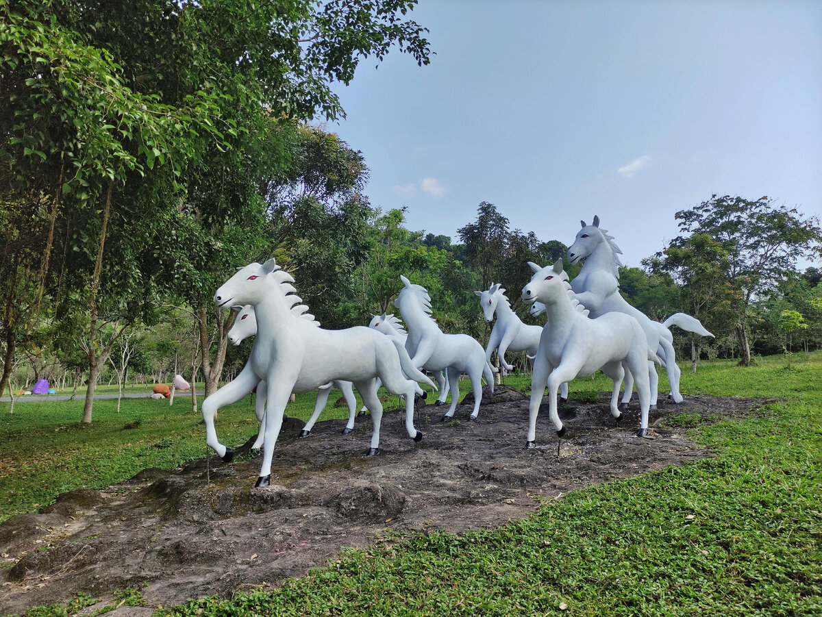 Экопарк Янг Бэй располагается в окруженной горами зелёной долине в 45 километрах от Нячанга. Парк поделён на отдельные зоны, между которыми курсируют открытые паровозики и микроавтобусы без дверей. Каждая локация украшена разнообразными скульптурами: здесь можно увидеть и тигров, и лошадей, и крокодилов, и даже динозавров. Территория очень чистая и ухоженная, гулять по ней одно удовольствие. Прогулка по парку для меня началась с посещения Дерева Будды и пруда с вечно голодными рыбами. Дерево Будды, или, как его ещё называют, дерево желаний, имеет впечатляющий размер — чтобы обхватить его ствол потребуется не менее 20 человек. На дерево можно повязать яркую ленточку и загадать желание. Ленточки продаются рядом и стоят 15000 донгов (около 60 рублей). За ту же стоимость здесь же можно купить детскую бутылочку со специальным кормом для рыб, живущих в пруду, и отправиться их кормить. Яркие оранжевые рыбы, толкая друг друга, устремятся к заветной соске, как только бутылочка приблизится к вод