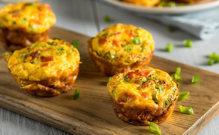 Отправляем мини-омлеты в духовку, разогретую до 180 градусов, на 18 минут.