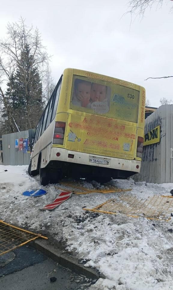 Сегодня около 13.00 сотрудники отдела вневедомственной охраны по Красногвардейскому району Санкт-Петербурга, находясь на маршруте патрулирования, на перекрестке улиц Ржевской и Красина обнаружили автобус, водитель которого не справился с управлением, съехал с дороги и врезался в металлический забор, повалив его на землю.