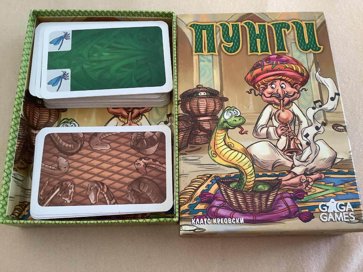 В этой статье я расскажу об интересной, весёлой и не сложной настольной игре — «пунги» В состав игры входит только 2 колоды: змей и животных (я знаю что змеи тоже животные). Обе нужно перетасовать и сдать по 5 карт каждому из колоды животных. А из колоды змей нужно выложить в открытую карты по количеству игроков. Сначала, каждый игрок выкладывает 1 карту перед собой. Другие игроки не должны видеть что вы положили. Затем карты вскрываются и игрок с самой большой цифрой на карте получает самою левую карту змеи, тот у кого второе место, получает левую из оставшихся. Так карту получает каждый. После этого все игроки добирают 1 карту. И так по новой: открываем карту, все кладут по 1, получают змей, добирают. Змеи бывают полезные и вредные. Полезные дают очки, вредные вычитают. В чём суть Поскольку игрок с наибольшим значением получает не лучшую картую а первую, она может быть и плохой — вычитающий очки. Может быть такое что самая полезная будет в середине. И что-бы получить её, нужно будет