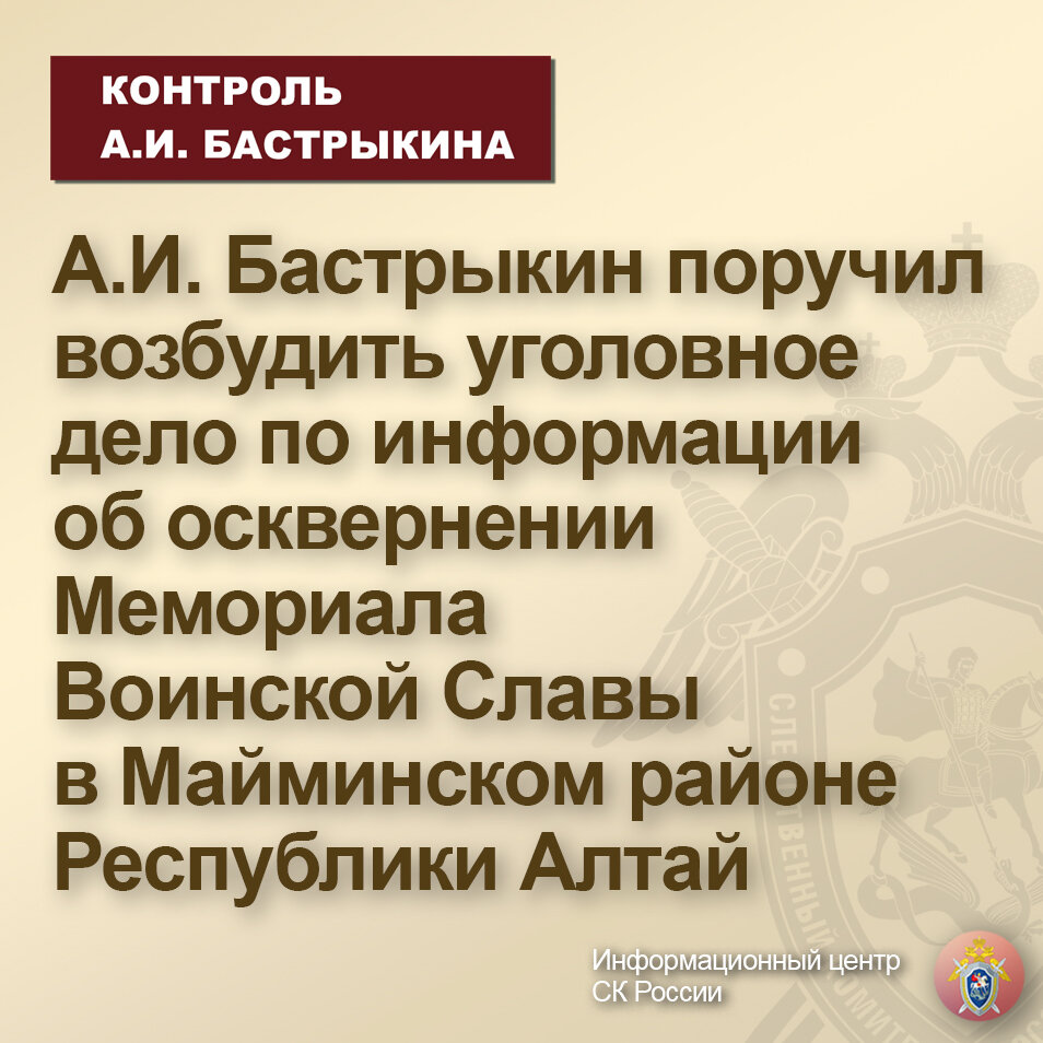#СледственныйКомитет #СКРоссии #СКР #ИЦСКР #Информационныйцентр #АлександрБастрыкин #ПредседательСКР #КонтрольПредседателяСКР #КомментарийКонтроль #РеспубликаАлтай