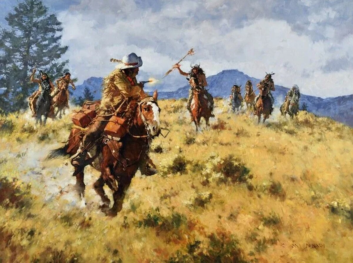 В зените солнце , высоко, И в небе кружится орёл. Пархает птица гордая , пархает. . А я на лошади, ковбой, Скачу в каньоне как дурной. Фигарю я , и лошадь подгоняю. . . Индейцев сзади штук пятьсот, Да пофиг , в рот бы им компот. Но странно, почему то я текаю. . Несусь как ветер над волной, А стрелы, вжух над головой. И эти , в бошках с перьями горланят. . . В меня кидают топоры. Но я твержу себе, - не ссы! Вот только нифига не помогает. . Я об седло весь зад разбил. Мой конь летит вздымая пыль. Давай родной , его я умоляю. . . И вот мой конь пошёл в отрыв, Пропал потужный мой позыв. Мой скальп при мне , и это вдохновляет. . Прошёл по лезвию ножа, Без остановки гнал коня. И вот в какой то город заезжаю. . . Я слез с коня и афигел , Пердак раздолбанный болел. И ноги колесом , - я отвечаю! . У стойла парконул коня, Гарцую шпорами звеня. К салуну на шарнирах подгребаю. . . Открыл культурно дверь ногой И к барной стойке подошёл. На стол монетки звонкие бросаю. . Кричу. Налей ка вискаря