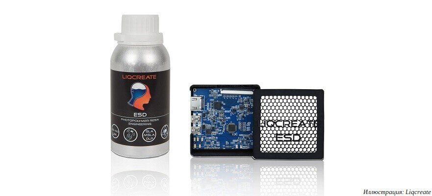 Новая смола от нидерландского производителя расходных материалов для стереолитографических 3D-принтеров подойдет для 3D-печати компонентов электронной техники. Liqcreate ESD — непрозрачная, черная смола, совместимая с лазерными (SLA), проекторными (DLP) и ЖК-масочными (MSLA) стереолитографическими 3D-принтерами с длиной волны в диапазоне 385 – 420 нм. Материал отличается неплохой ударной вязкостью и хорошо подходит для изготовления креплений, защитных корпусов и технологической оснастки. Технические характеристики и методы испытаний фотополимерной смолы Liqcreate ESD: Предел прочности на разрыв (D638М): 37 МПа Относительное удлинение при разрыве (D638М): 5-10% Модуль растяжения (D638М): 1,9 ГПа Предел прочности при изгибе (D790): 83 МПа Модуль упругости при изгибе (D790): 2,1 ГПа Ударная вязкость по Изоду с надрезом (ISO 180): 3,3 кДж/м^2 Гигроскопичность (D570-98): 3,84% Температура разложения (собственный метод): свыше 250°СТемпература тепловой деформации при 0,45 МПа (ISO 75): 51°С