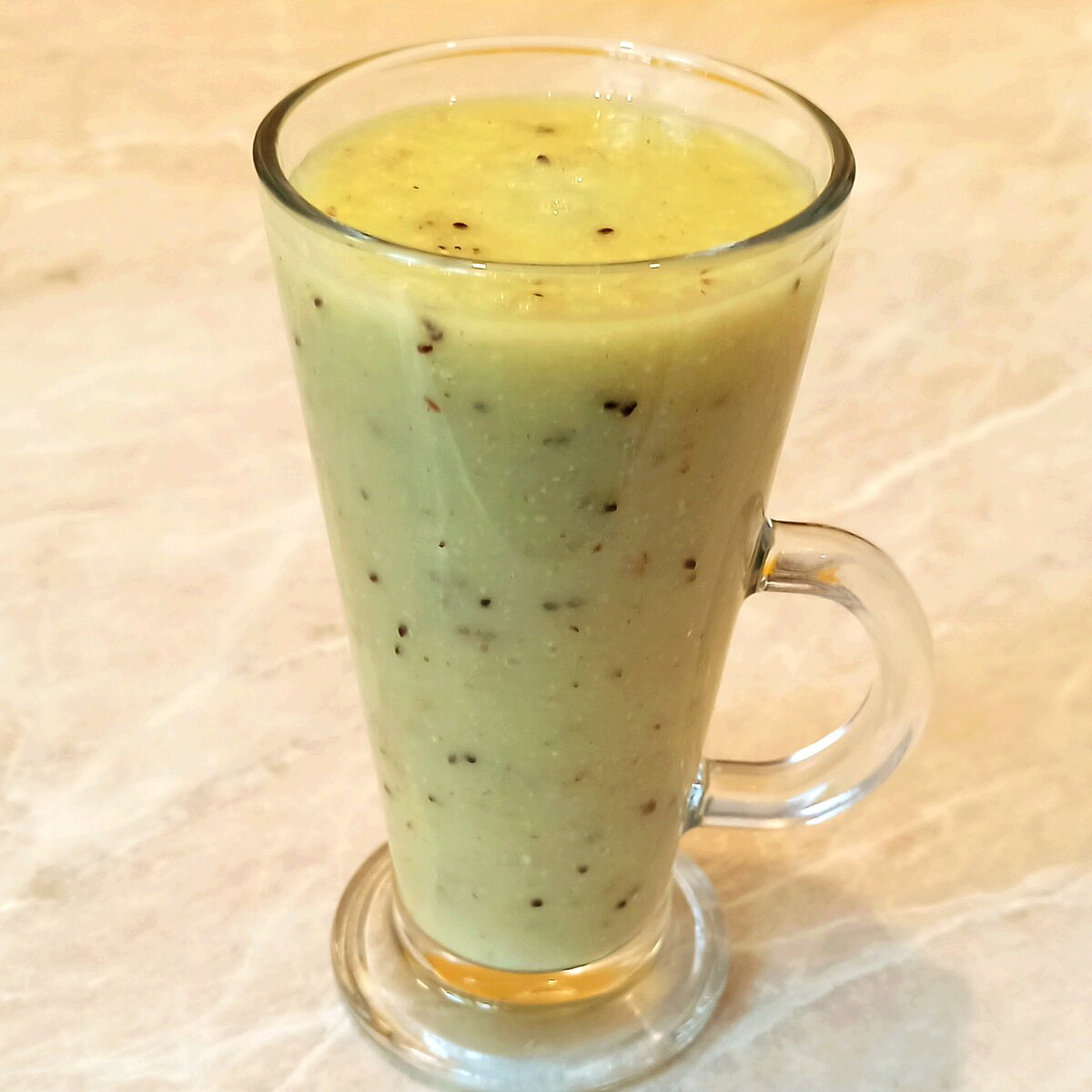 Прекрасное начало дня с мягкого, однородного, густого напитка. Витаминный заряд бодрости и свежести. Диетологи советуют употреблять смузи в первой половине дня, если смесь составлена из сладких фруктов, чтобы организм не оставил углеводы прозапас, но если смесь больше овощная можно организовать себе полезный перекус в течении дня и вечером. Предлагаю попробовать фруктово-овощной смузи, с минимальным количеством калорий. 1 яблоко очищенное 1 киви очищенное 1-2 стебля сельдерея 1 ст л любых орехов или семечек, лучше не обжаренных 1 ч л мёда по желанию 150 г воды Взбиваем, разливаем, получаем заряд бодрости. Приятного аппетита!