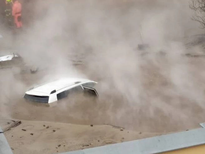 В центре Санкт-Петербурга легковушка с двумя детьми по крышу провалилась в яму с горячей водой